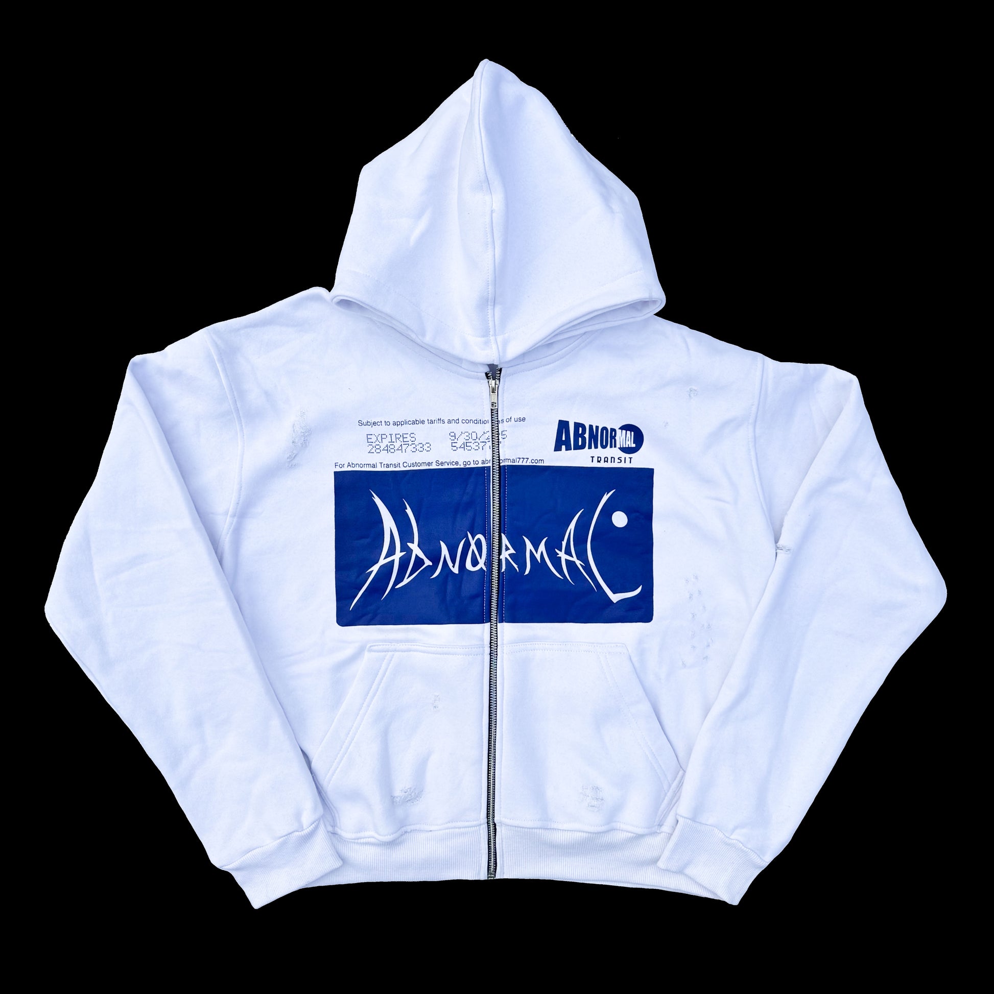 100% cotton, 350gsm, cropped and distressed zip up hoodie with front screen printing. If you do not prefer the cropped look, please consider sizing up.