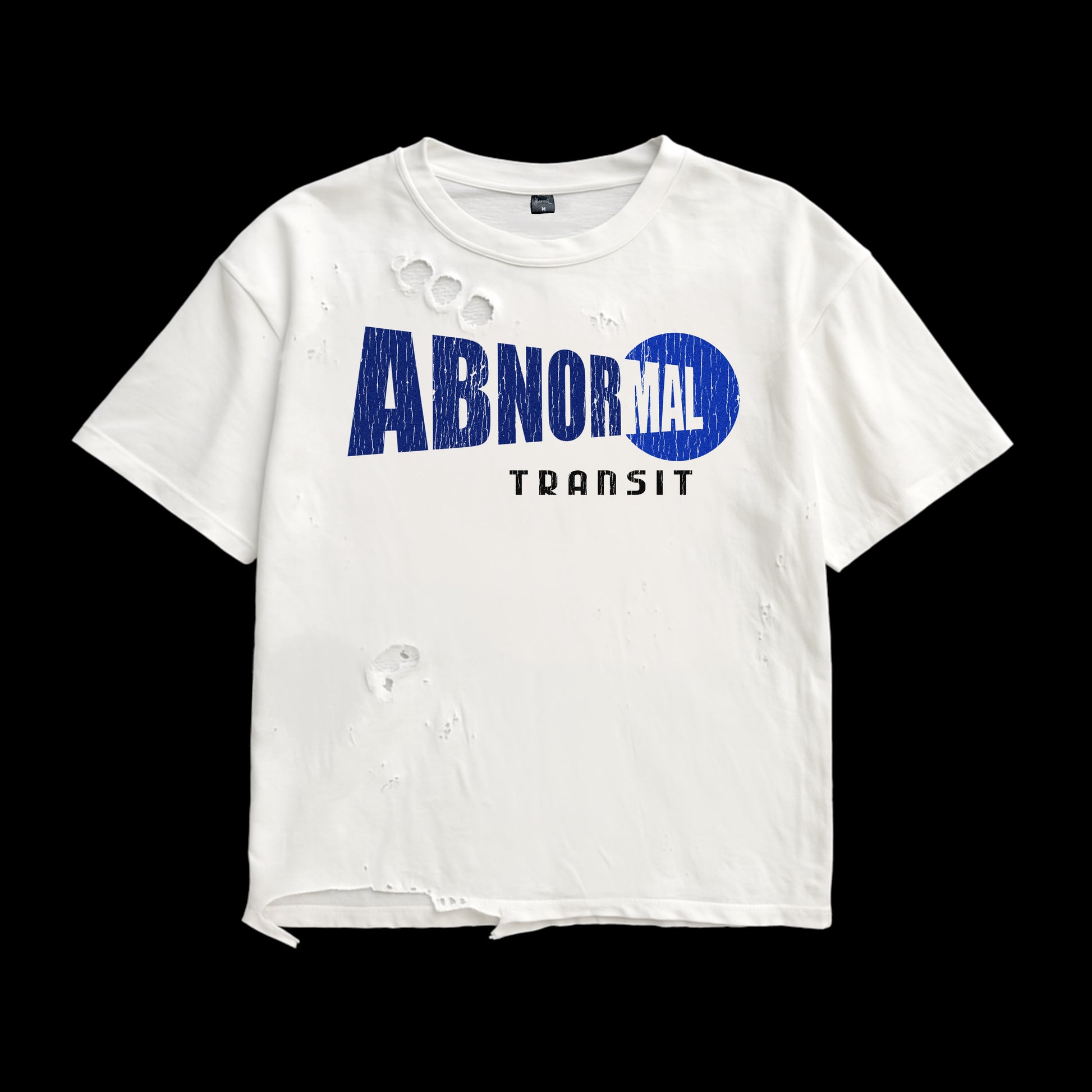 100% cotton, 200gsm, cropped and distressed tee with front and back screen printing If you do not prefer the cropped look, please consider sizing up.